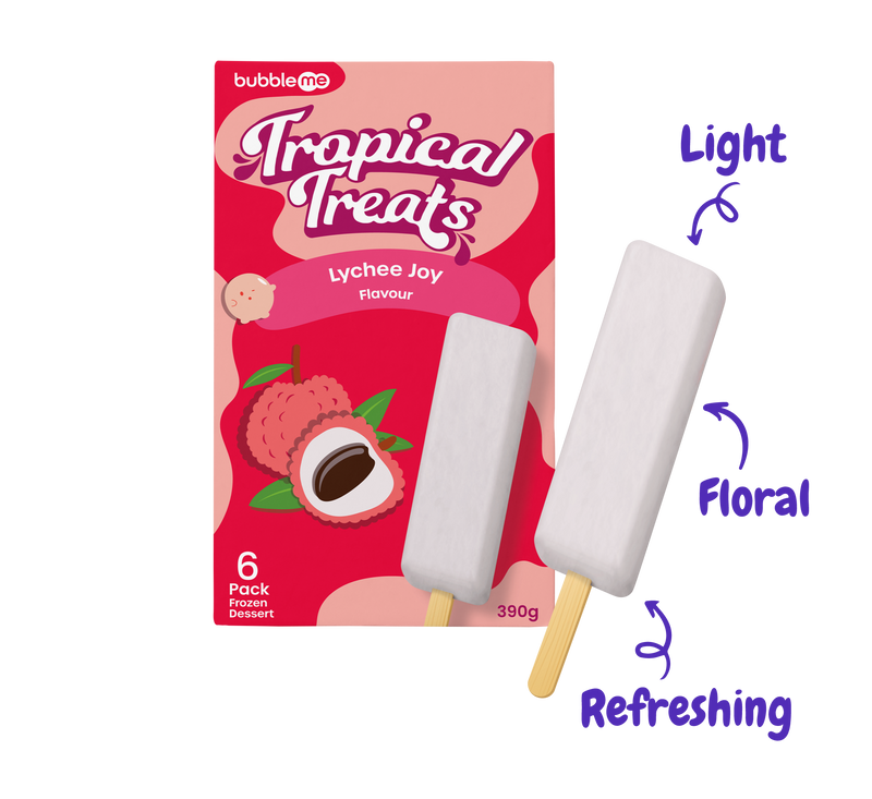 Light and juicy, this lychee-infused delight offers a smooth, refreshing flavour that’s as satisfying as it is unique. The playful chewiness adds to the experience, making it a go-to snack for those who love fruity indulgences. Whether savoured alone or shared, Tropical Treats ensure a sweet escape to paradise.